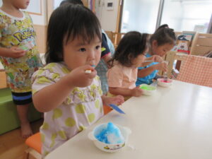 夏祭りやかき氷、キッズステーションのさくら組さんと一緒に楽しい時間を過ごしたね。